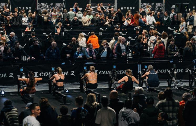 HYROX 是一项面向所有人的全球健身赛事。来自世界各地的参赛者都以完全相同的形式进行比赛。比赛从 1 公里跑步开始,然后进行一个功能性训练项目,如此循环 8 次。比赛在大型室内场馆举行,营造出独特的体育场氛围。