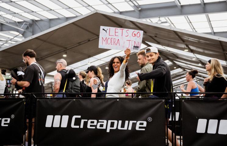 HYROX es una carrera mundial de fitness para todos los cuerpos. Participantes de todo el mundo compiten exactamente en el mismo formato. La carrera comienza con una carrera de 1 km, seguida de 1 movimiento funcional, que se repite 8 veces y se lleva a cabo en grandes lugares cubiertos, creando una atmósfera única similar a la de un estadio para todos los participantes.